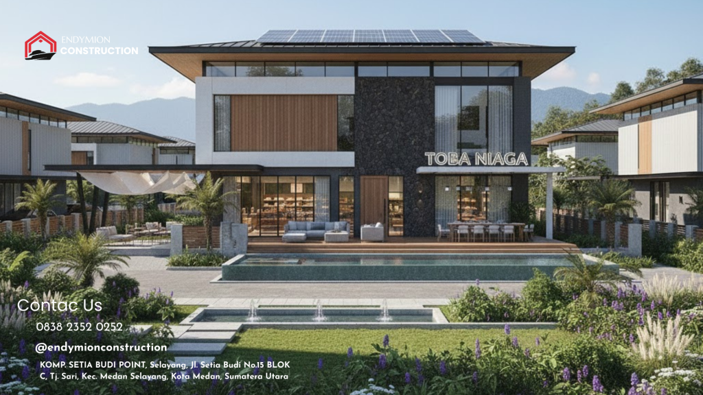 Sebagai respons terhadap kesadaran global dan keunikan ekosistem Danau Toba, Endymion Construction menawarkan pendekatan desain yang ramah lingkungan dan berkelanjutan (Green Commercial Design). Konsep ini tidak hanya baik bagi citra bisnis (green branding), tetapi juga menghemat biaya operasional dalam jangka panjang. Dalam desain bangunan usaha, kami mengintegrasikan sistem passive cooling seperti ventilasi silang alami, insulated roof (atap berinsulasi), dan penggunaan overhang yang lebar untuk mengurangi panas matahari langsung.
